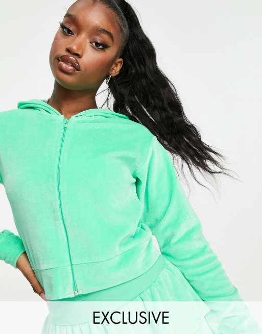 ASYOU velour cropped zip through hoodie co-ord in green