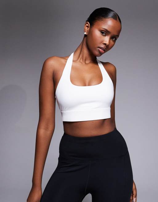 4505 active halter neck performance medium support sports bra with removable padding in white