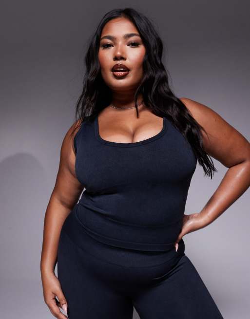 4505 Curve seamless V neck singlet with inner bra in washed black