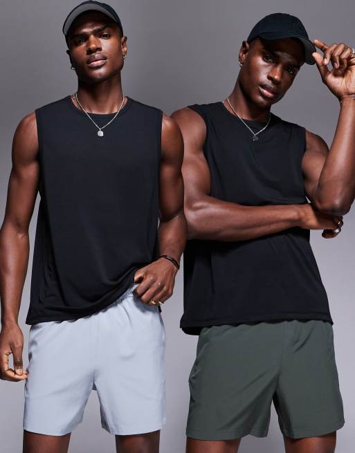 4505 Icon 13cm quick dry training shorts with zip pockets 2 pack in grey and khaki