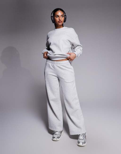 4505 Icon Rest Day heavyweight 440gsm cotton wide leg trackies in light grey marl
