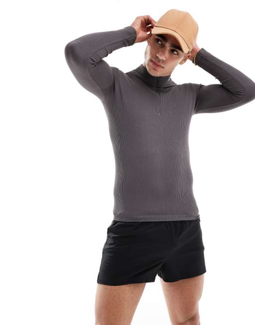 4505 muscle fit seamless rib performance 1/4 zip top in steel grey