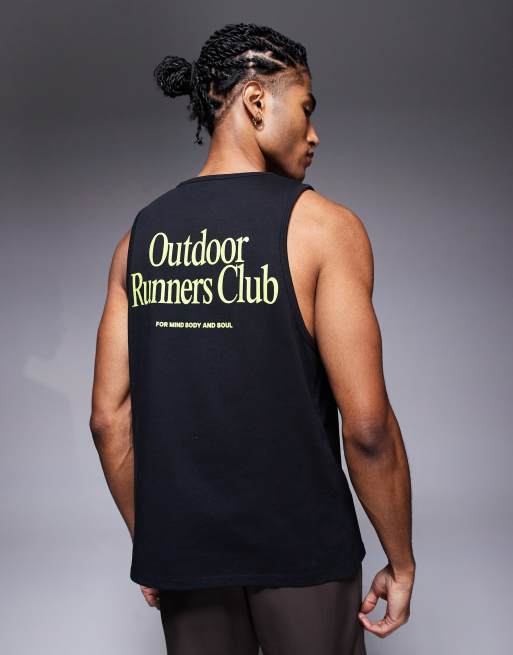 4505 Outdoor Runner back print cotton singlet with quick dry finish in black