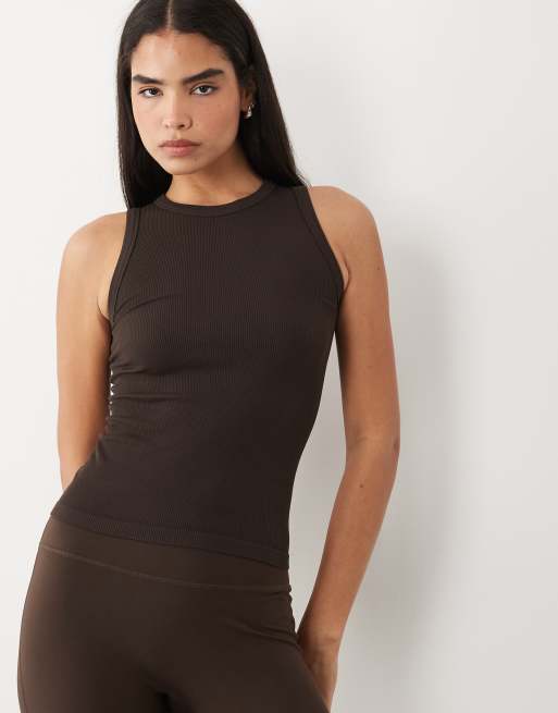 4505 seamless lightweight rib 90s racer singlet in espresso