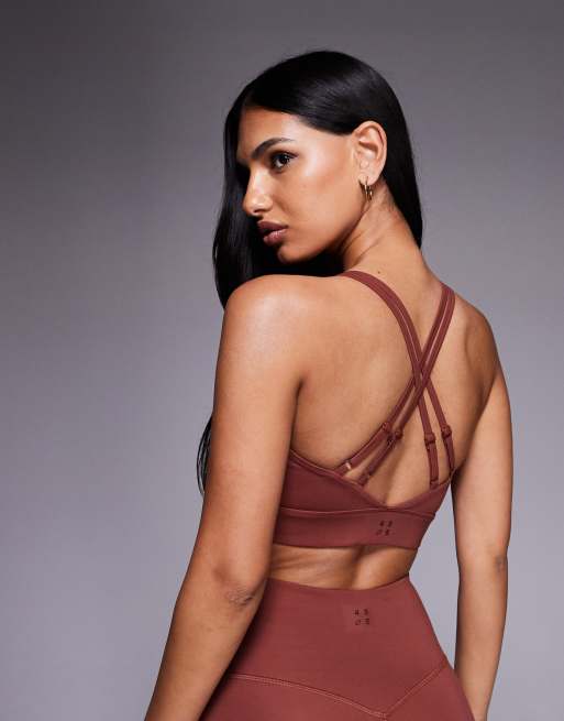 4505 soft touch strappy medium support sports bra with removable padding in orange
