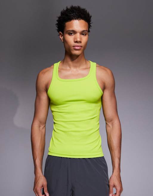 4505 square neck slim fit seamless rib training singlet in acid green