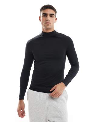 4505 training long sleeve muscle fit base layer with mock neck with thermal performance fabric in black