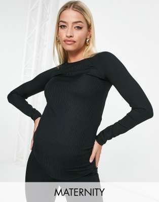 ASOS 4505 Maternity long sleeve training top in rib (part of a set)