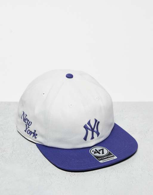 47 Brand NY Yankees straight peak fitted cap in off white and blue