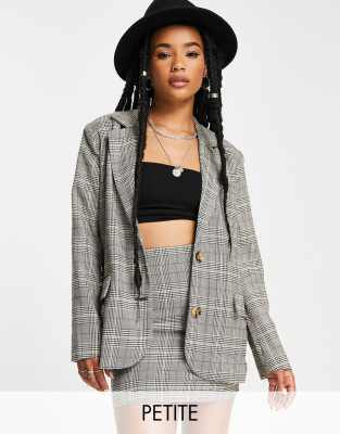 4th & Reckless Petite exclusive blazer in brown check (part of a set)