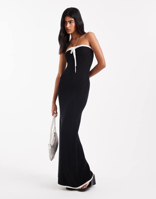 4th & Reckless contrast edge tie front crochet beach maxi dress in black
