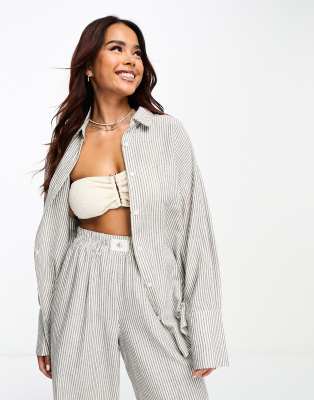 4th & Reckless Delphi linen look stripe beach shirt in cream (part of a set)