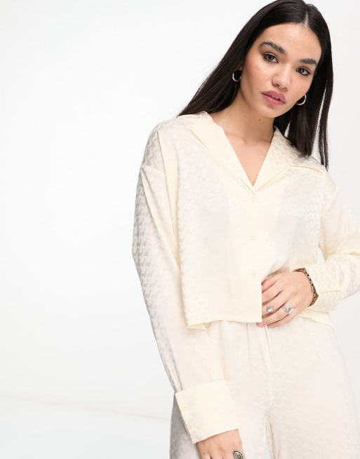 4th & Reckless satin boxy shirt and wide leg pants set in cream jacquard