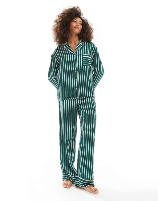 4th & Reckless satin stripe pyjama pants in green (part of a set)