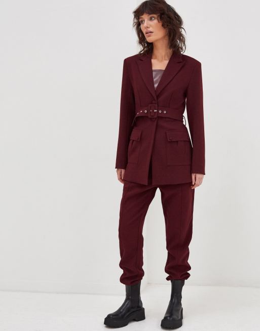 4th & Reckless tailored joggers in burgundy