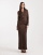 4th & Reckless textured rib collared long sleeve gold button-through top and midaxi skirt set in chocolate