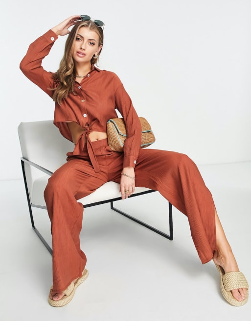 4th & Reckless Trent crinckle tie front beach shirt set in orange