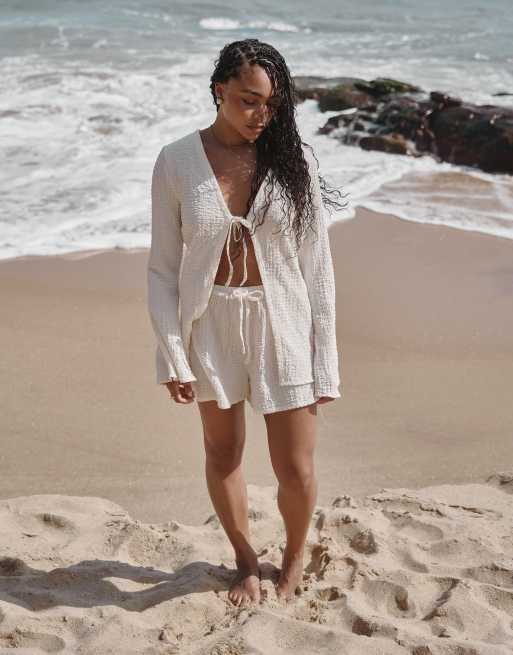 4th & Reckless x Loz Vassallo Lanai crinkle linen look beach shorts in white (part of a set)