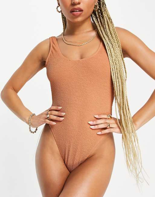 4th & Reckless Zaneta backless crinkle swimsuit in peach