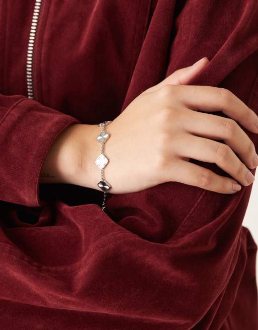 Abbott Lyon textured clover bracelet in stainless steel silver