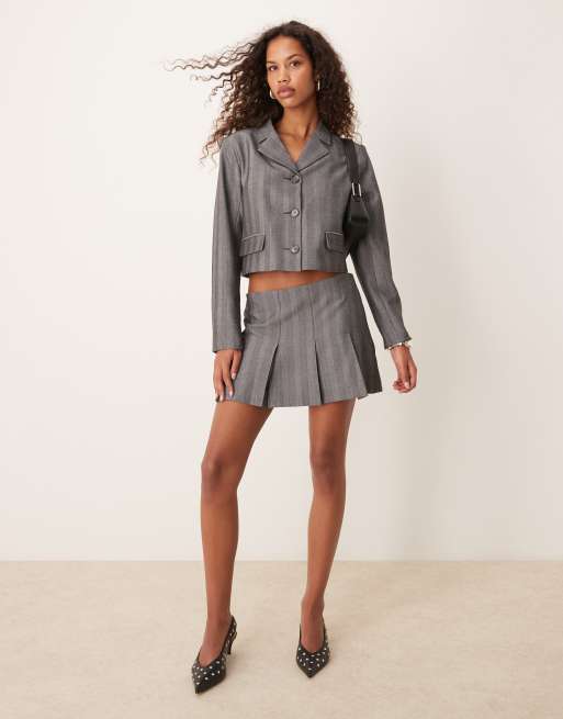 Abercrombie & Fitch blazer, skort and vest set in striped grey herringbone