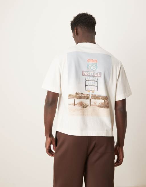 Abercrombie & Fitch cropped motif back print t-shirt in white