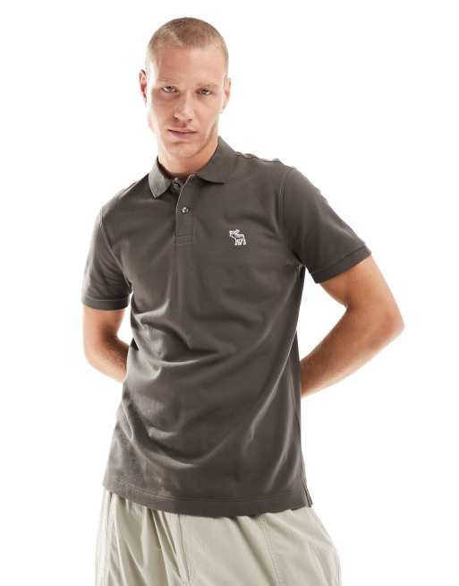 Abercrombie & Fitch elevated icon logo pique polo shirt in olive green