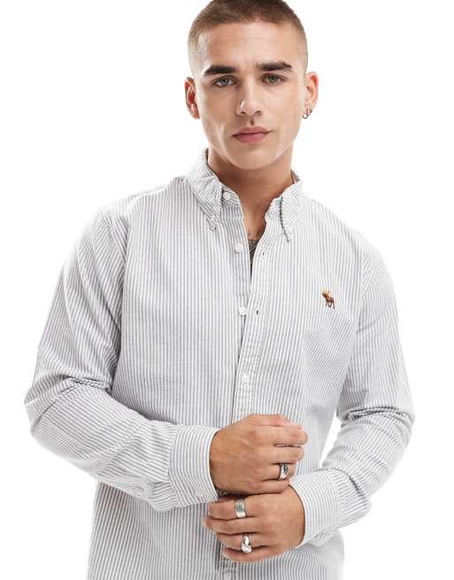 Abercrombie & Fitch icon logo stripe oxford shirt in dark grey