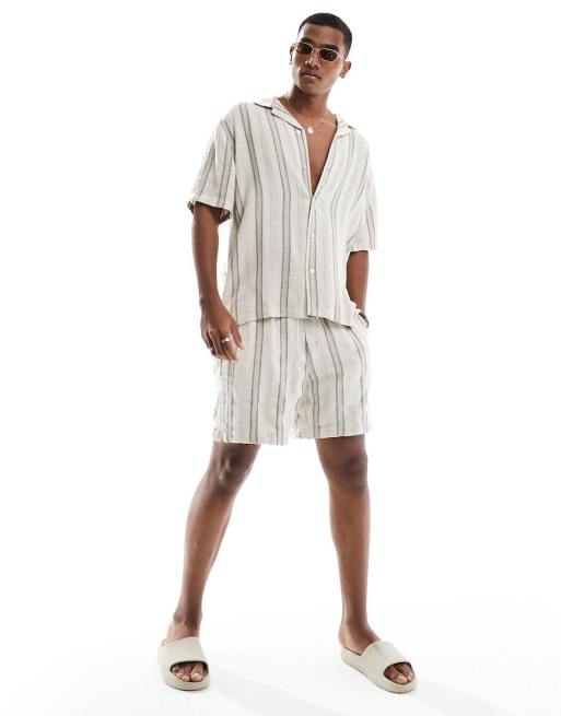 Abercrombie & Fitch linen blend dobby stripe short sleeve shirt and shorts set