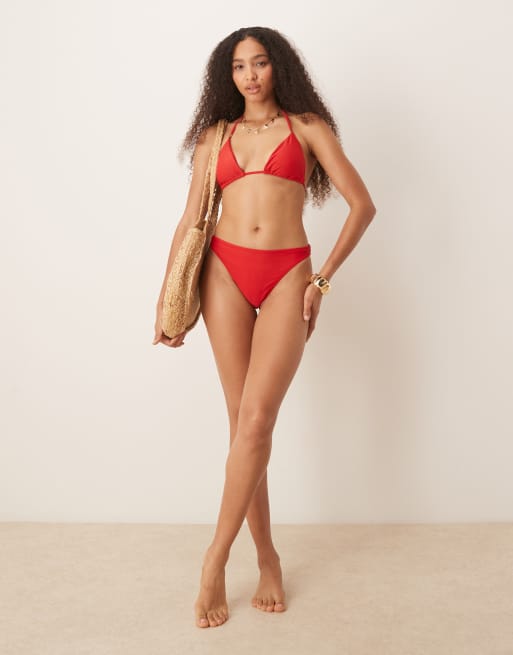 Abercrombie & Fitch mid rise bikini bottoms in red (part of a set)