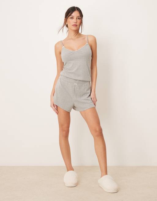 Abercrombie & Fitch nightwear flippy pointelle shorts in light grey (part of a set)