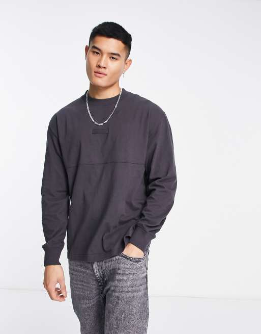 Abercrombie & Fitch small scale logo oversized cut & sew long sleeve top in dark grey