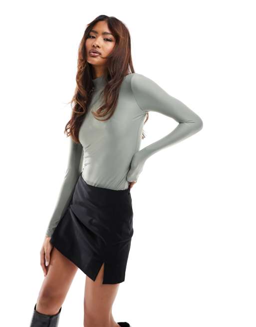 Abercrombie & Fitch soft matte high neck bodysuit in green