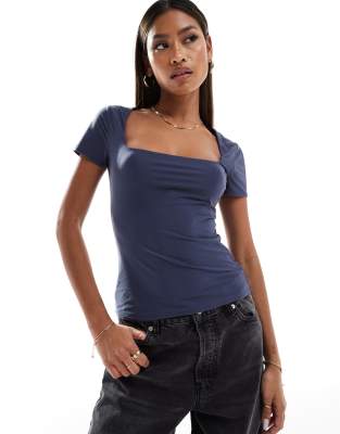 Abercrombie & Fitch soft matte square neck t-shirt in navy