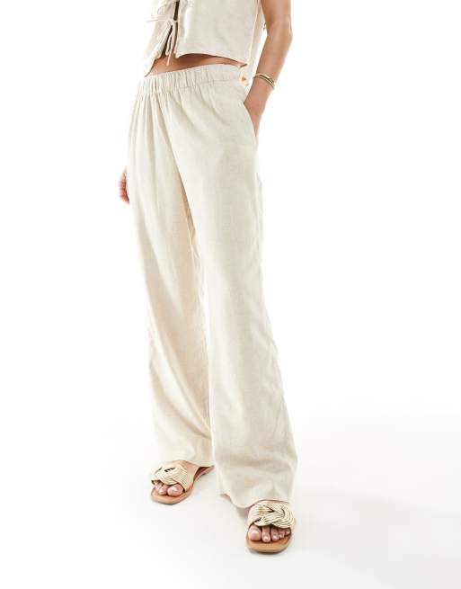 Abercrombie & Fitch wide leg linen blend pants in beige (part of a set)