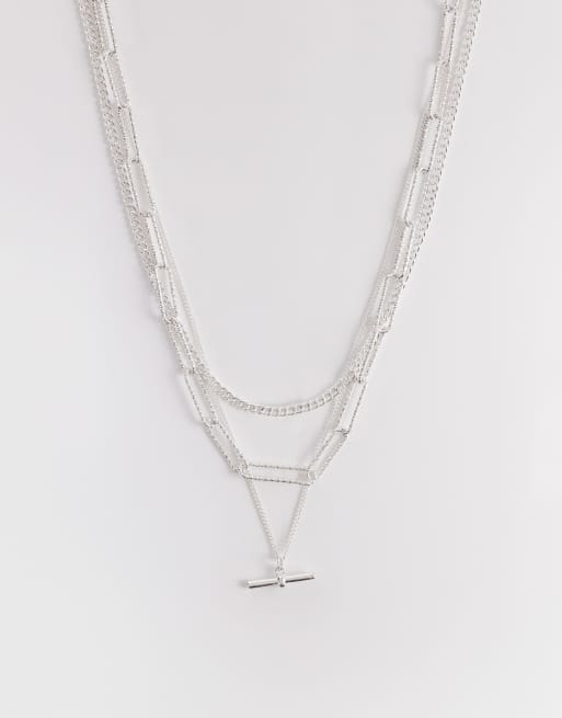 Accessorize 3 row delicate t-bar necklace in silver