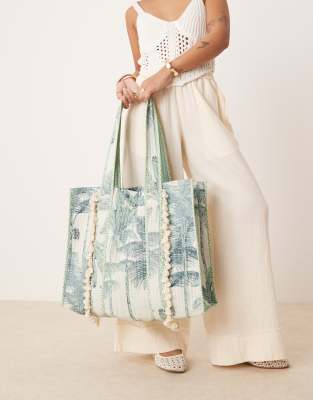 Accessorize extra large palm print quilted shopper in blue