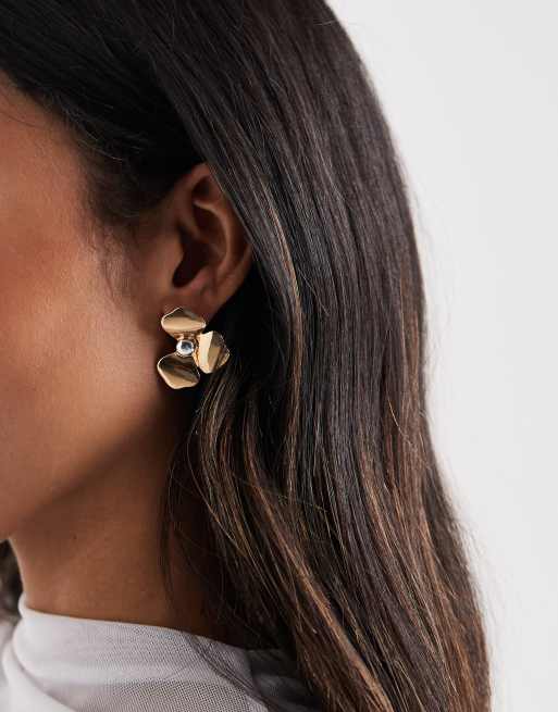 Accessorize mixed metal flower petal stud earrings in gold & silver