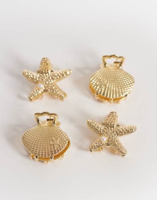 Accessorize pack of 4 mini shell hair claw clips in gold