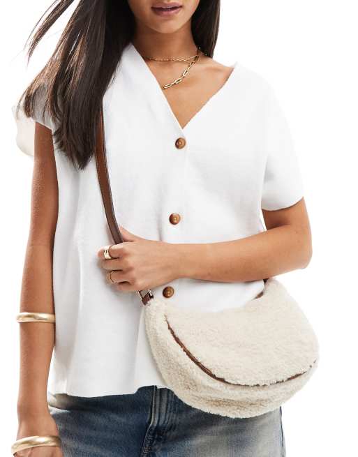 Accessorize shearling cross body bag in cream