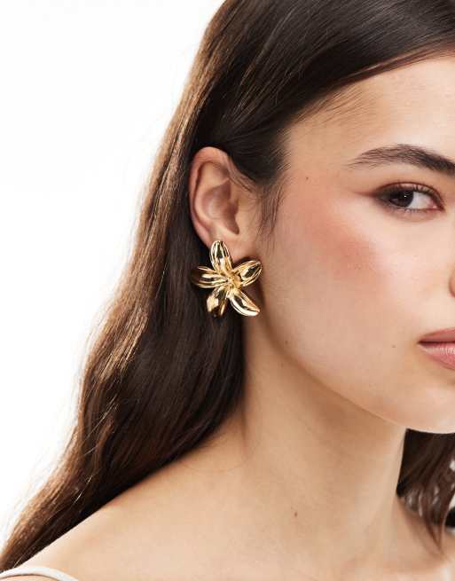 Accessorize statement lotus flower earrings in gold