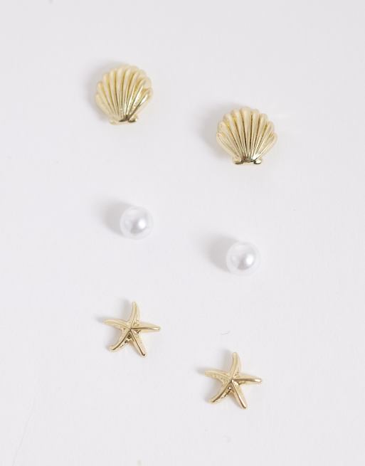 Accessorize Z collection seashell 3 pack earrings in 14k gold plated