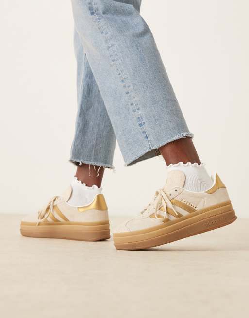 adidas Orginals Gazelle Bold sneakers in off white and metallic gold stipes