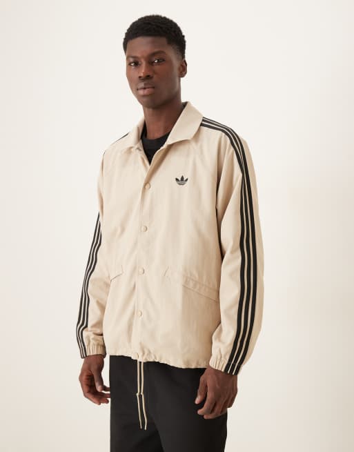 adidas Originals 3 stripe coach jacket in stone