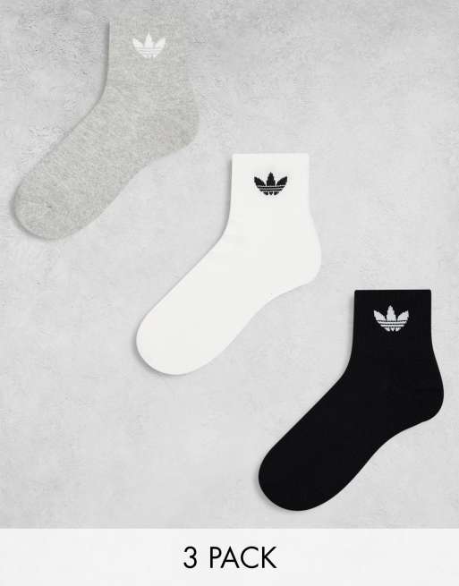 adidas Originals 6 pack mid ankle socks in black, grey and white