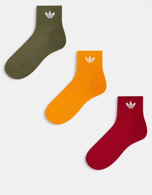 adidas Originals mid ankle socks in khaki, orange and red