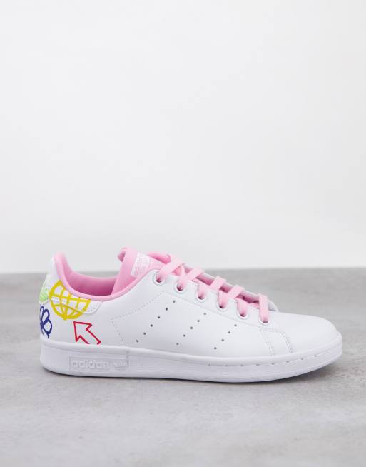 adidas Originals Stan Smith sneakers in white with graphic print - WHITE