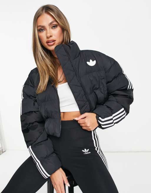 adidas Originals Three-Stripes cropped padded jacket in black