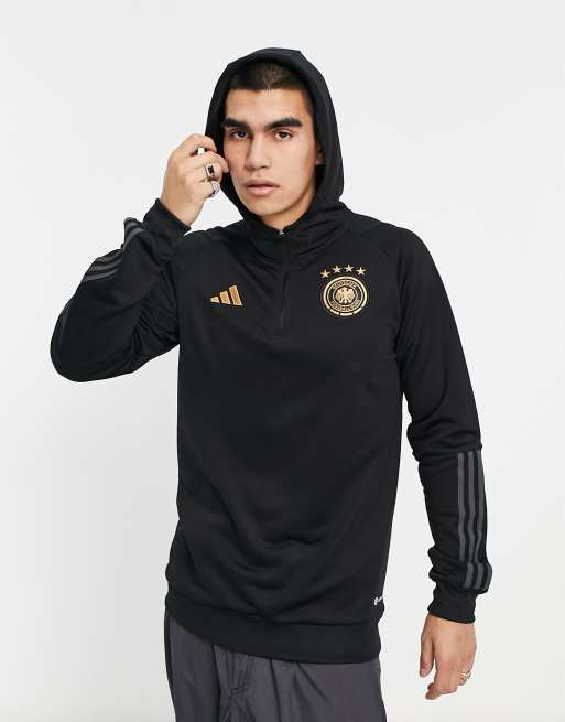 adidas Football Germany World Cup 2022 off-pitch 3 stripe 1/4 zip hoodie in black
