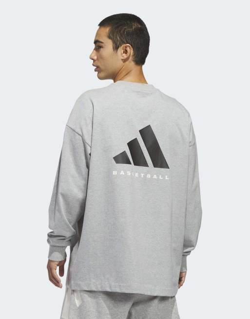 adidas Performance basketball long sleeve tee (gender neutral) in medium grey heather